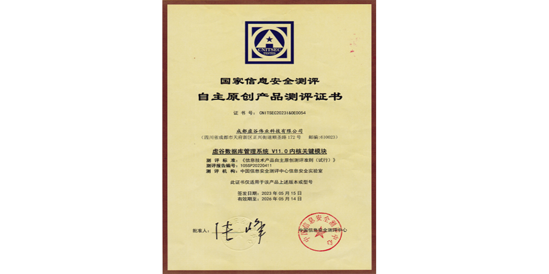虚谷数据库管理系统(安全版)V11通过了国家保密科技测评中心检测,符合国家保密标准《涉及国家秘密的信息系统安全数据库产品技术要求》的要求。虚谷数据库管理系统是国内自主原创的数据库产品,通过权限划分、身份认证、访问控制、行为审计、数据加密等保障数据库系统安全。