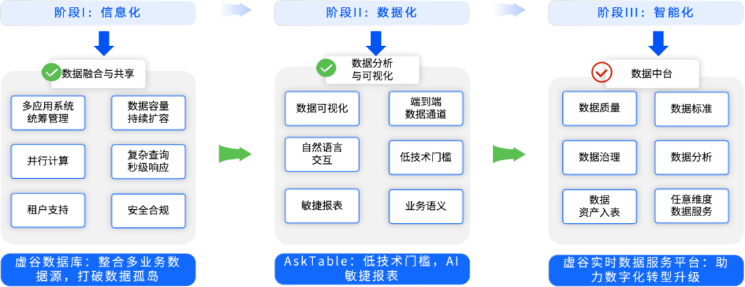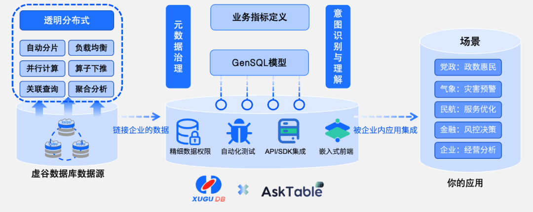 为有效解决这些难题,虚谷数据库与 AskTable 强强联合,推出「数据智能三部曲」,凭借虚谷分布式数据库架构与 AI 自然语言交互技术,重构数据价值链,助力企业释放 PB 级数据潜能。