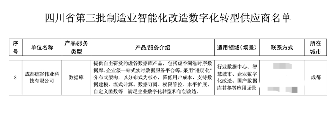 成都虚谷伟业科技有限公司凭借其自主研发的“虚谷数据库”产品及在工业数字化转型领域的突出表现,成功入选四川省第三批制造业智能化改造数字化转型供应商名单。