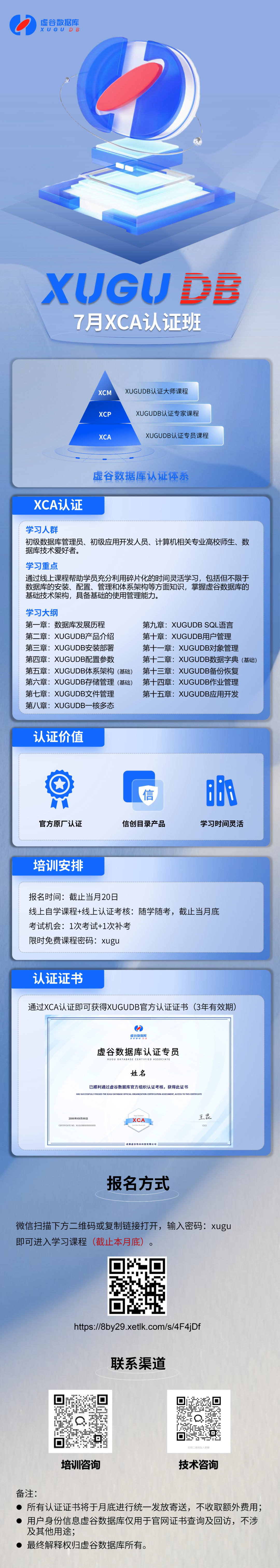 点击报名>>即学即考!虚谷数据库XCA认证7月班火热开启!